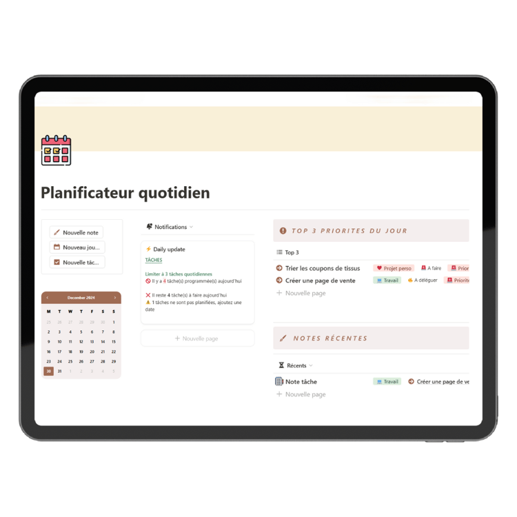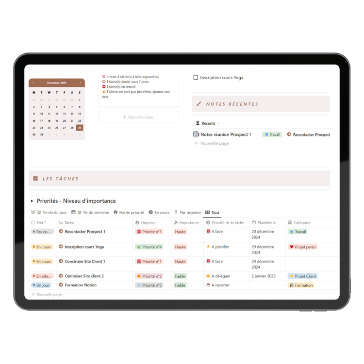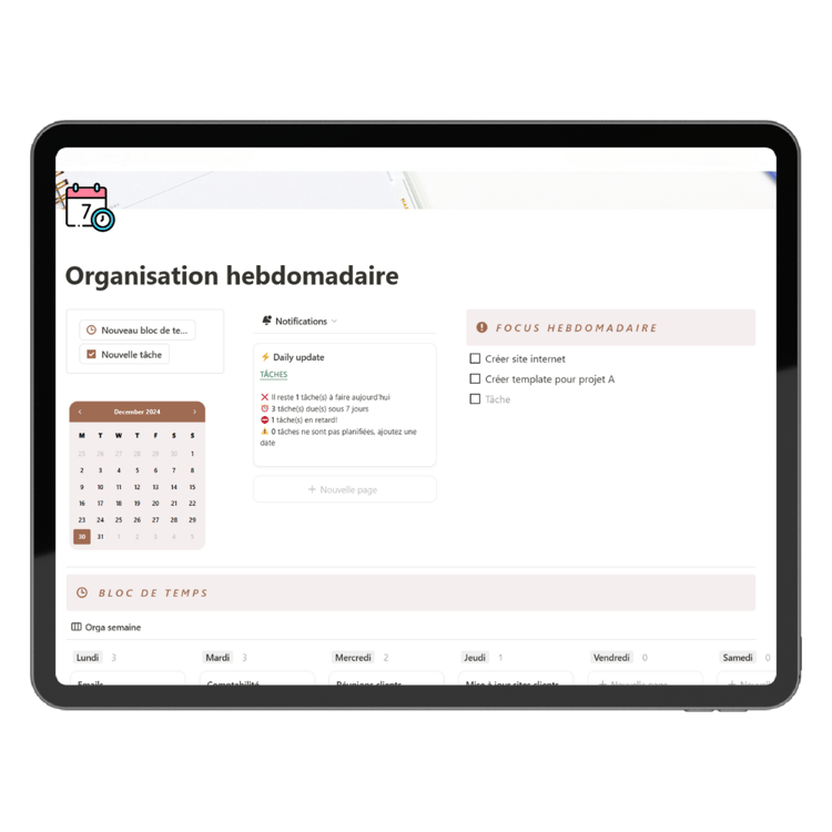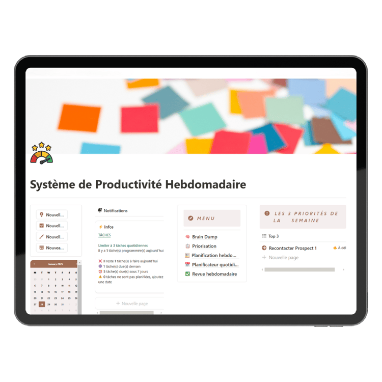 Découvrez de nombreux modèles Notion pour vous aider à rester organisés dans votre vie personnelle et professionnelle. Devenez plus productifs grâce à ces outils, et gérez sans stress tous vos projets et atteignez vos objectifs. Votre organisation quotidienne devient plus simple en un clic !