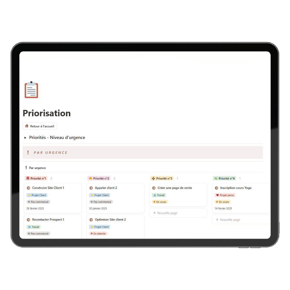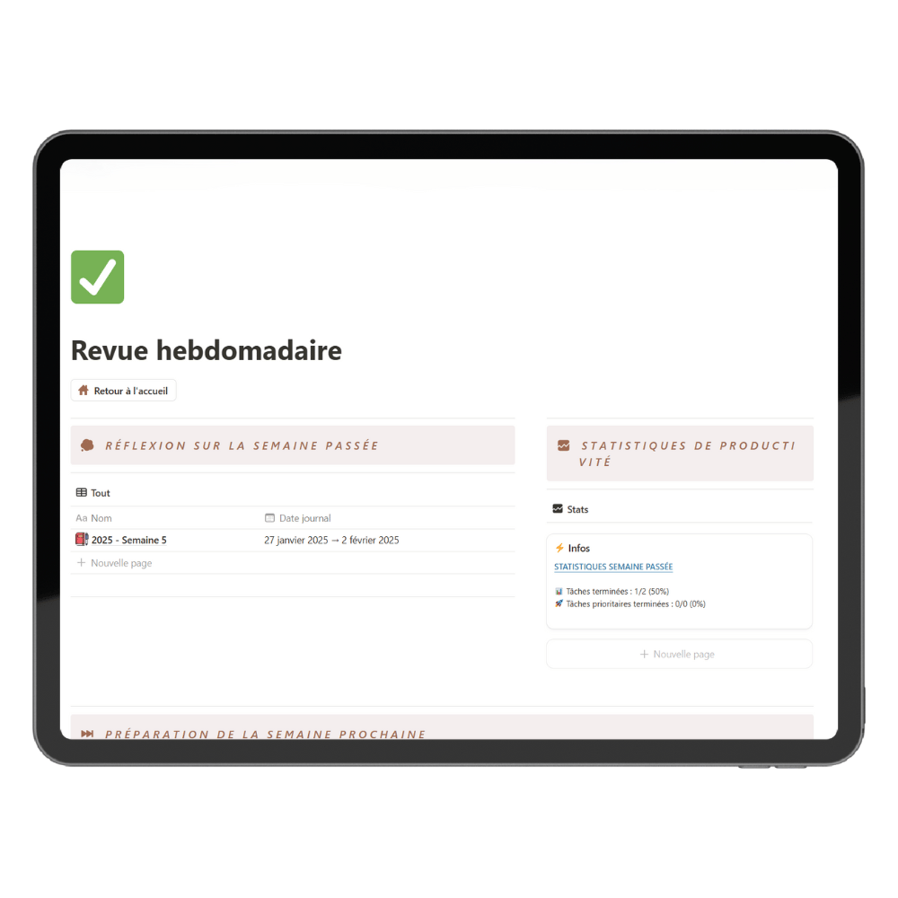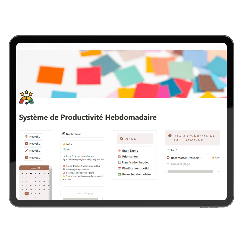Un template Notion professionnel qui transforme votre organisation du brain dump à la revue hebdomadaire.